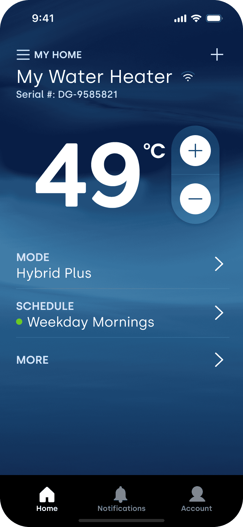 - Control Temperature Settings from Anywhere. Adjust the water heater remotely from the mobile app. Easily customize daily or weekly schedules.